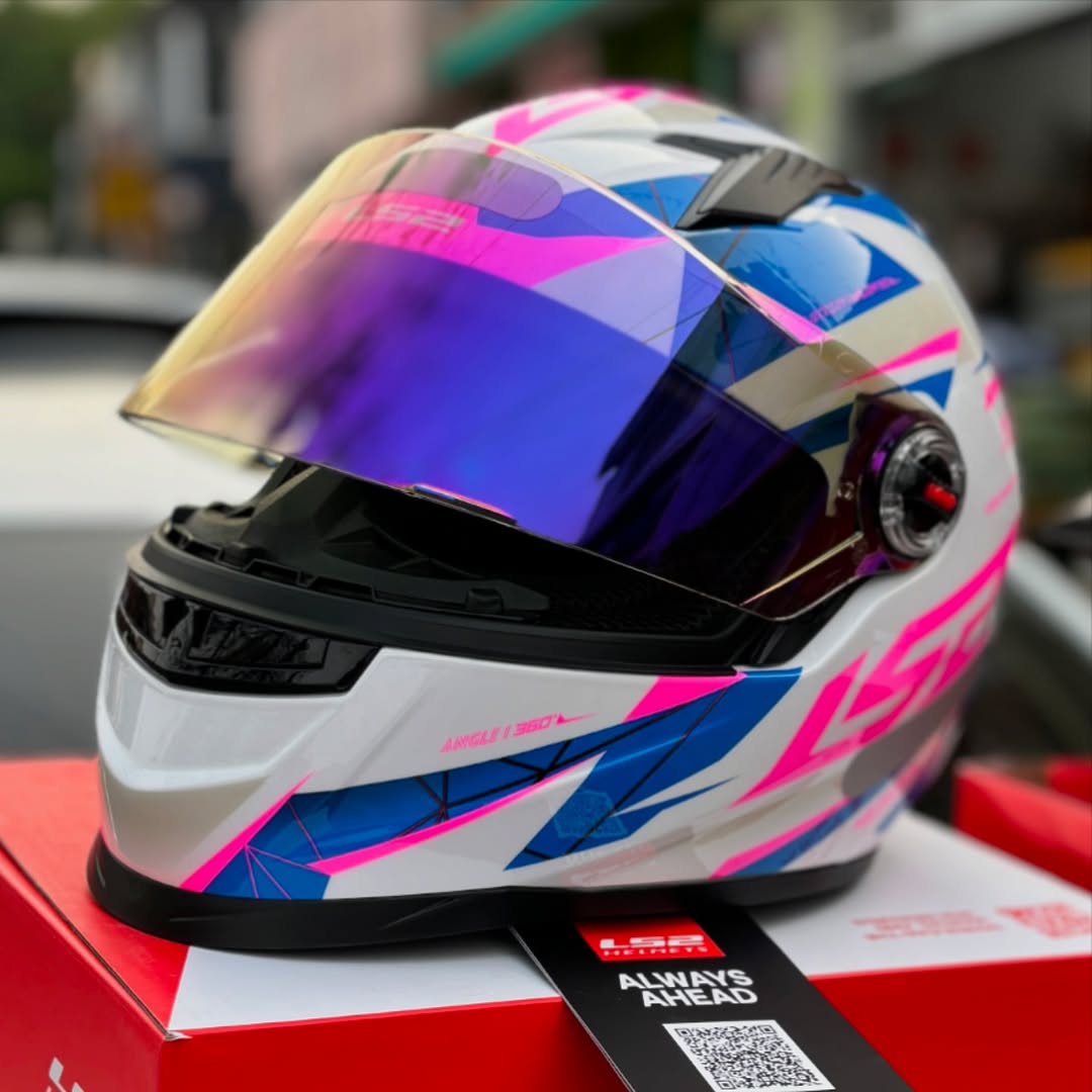 CAPACETE LS2 FF800 STORM TECHY BRANCO/ROSA (COM VISEIRA SOLAR)