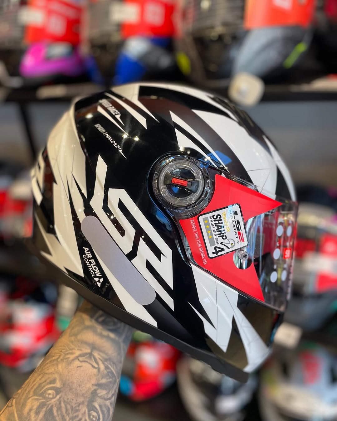 CAPACETE LS2 FF358 RAPID CROMO PRETO/VERMELHO FOSCO